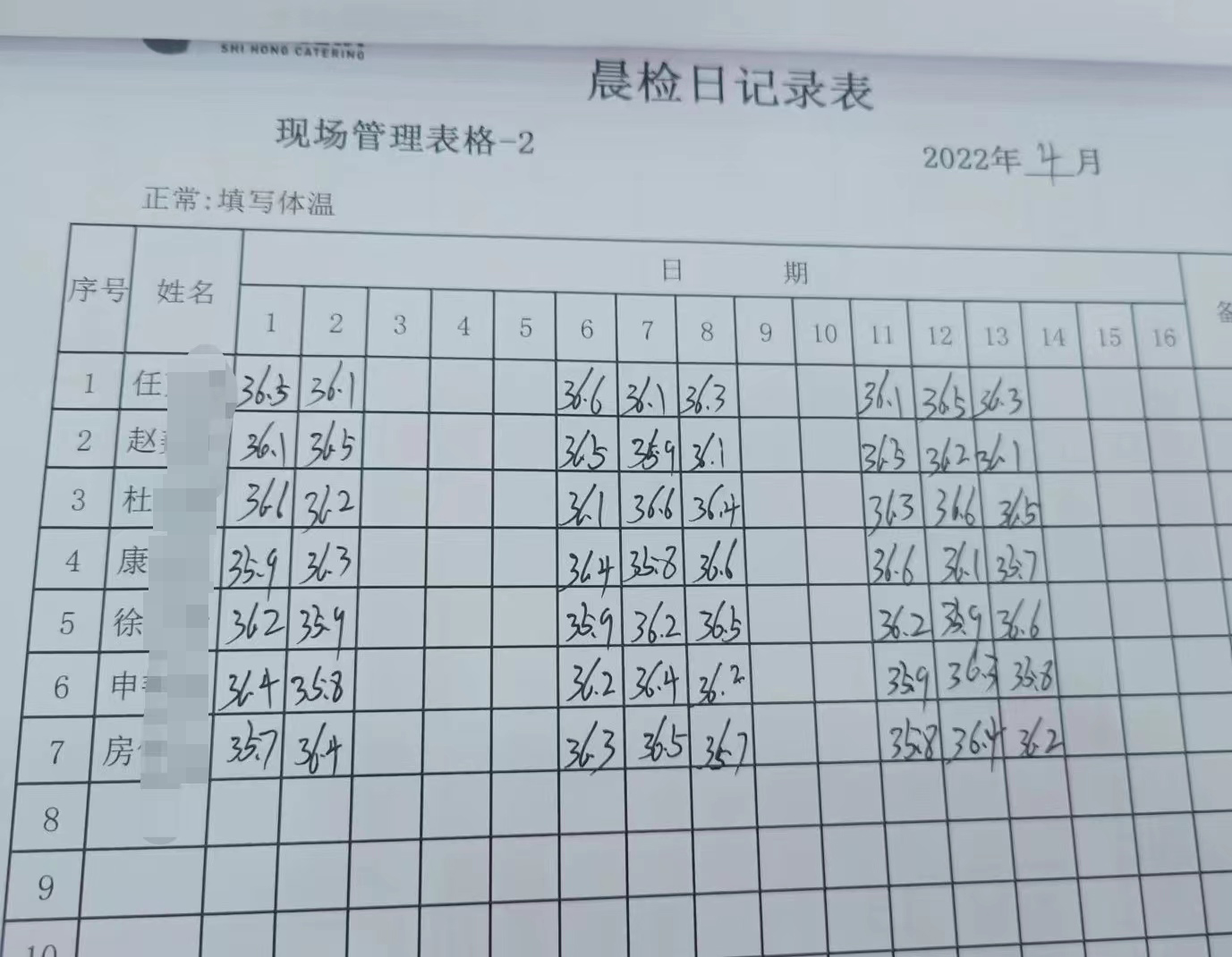 ●   岗前体温检测,全天供餐项目一日三测温;